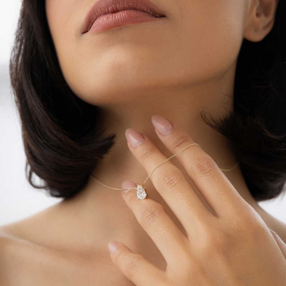 สร้อยคอเพชรรูปลูกแพร์14K ห้าง่ามสำหรับผู้หญิงและเด็กผู้หญิงสายโซ่สีทองสีขาวล้วนสำหรับ1.25ctw ทันสมัย