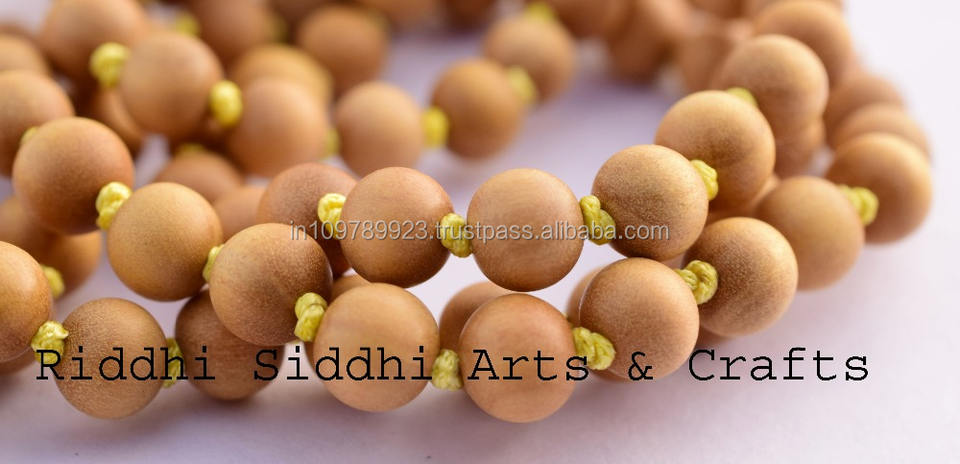 Trendy 108-Jap Mala Bead Necklace Spiritual Sandalwood String Fashionable Beaded Accessory Children's Hindu Eco-Friendly Golden