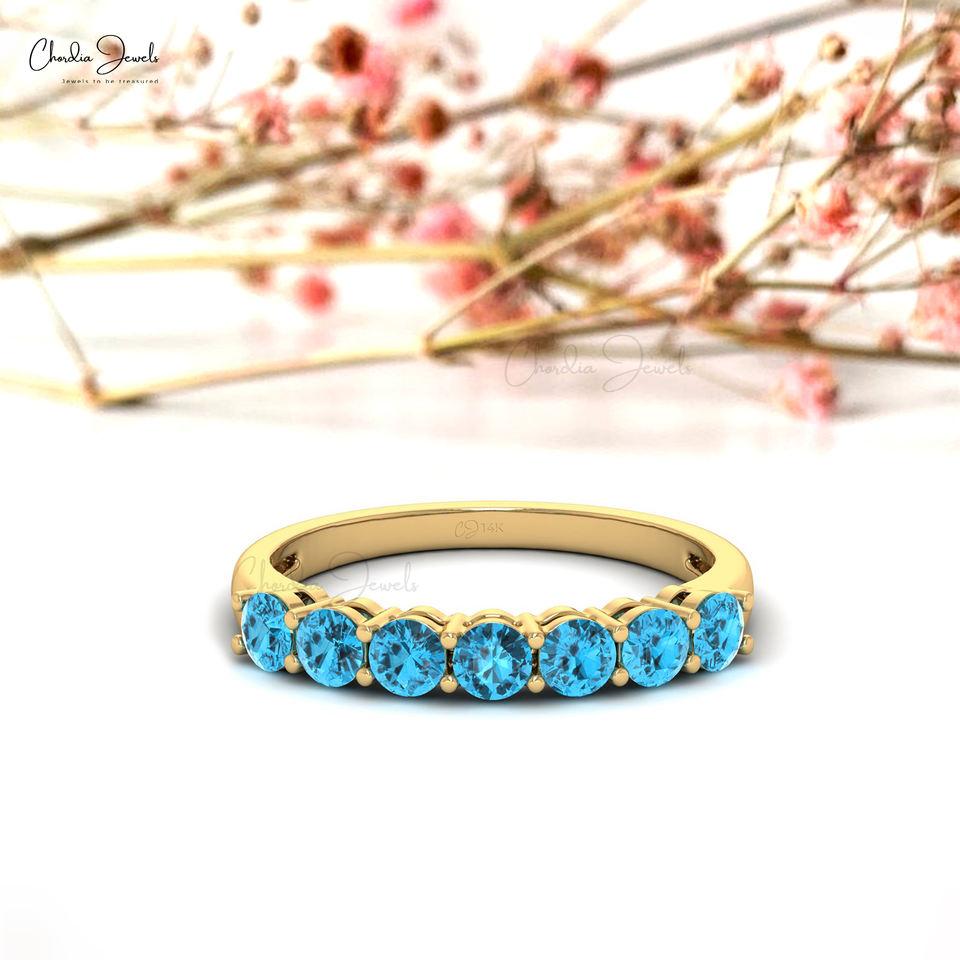 แหวนทองคำแท้ 14k ดีไซน์ทันสมัย ประดับบลูโทแพซทรงบริลเลียนต์ 3 มม. แบบครึ่งวง สำหรับงานปาร์ตี้ งานแต่งงาน เครื่องประดับคริสเตียน สำหรับเจ้าสาว
