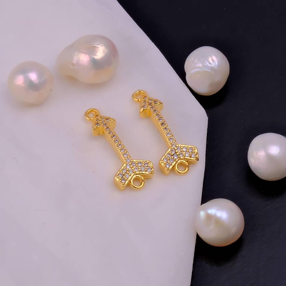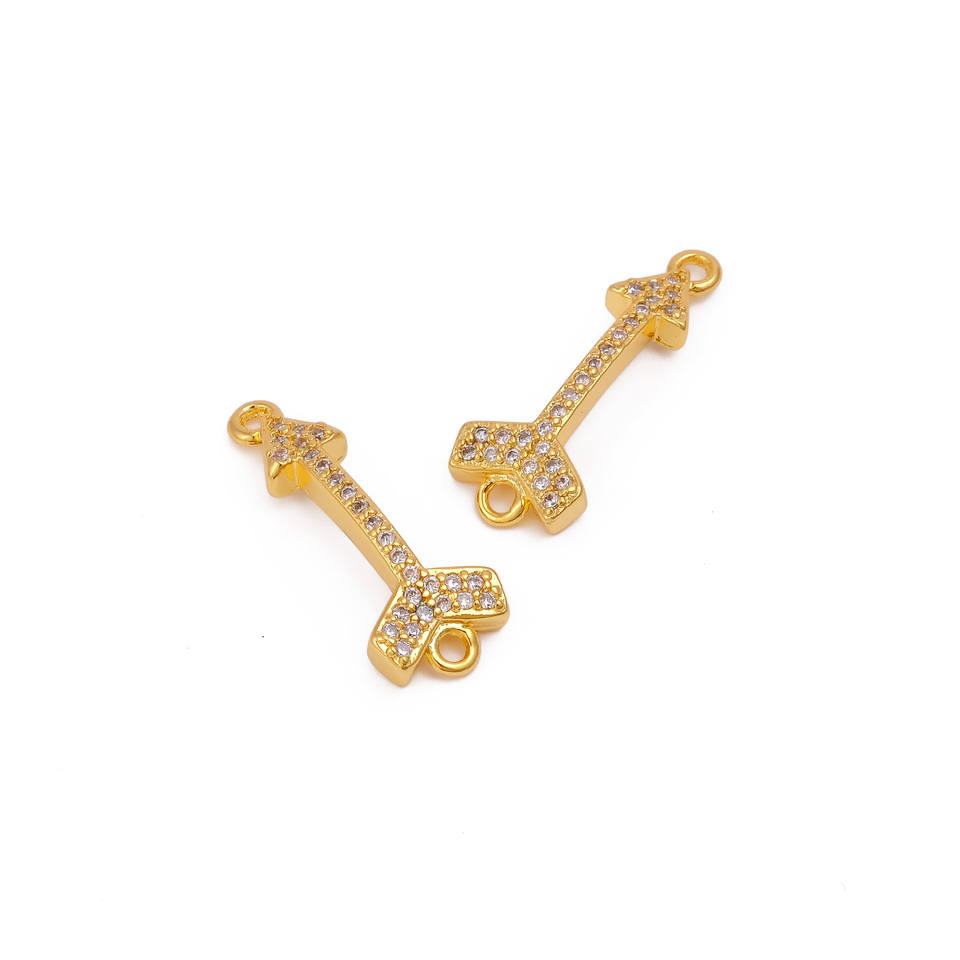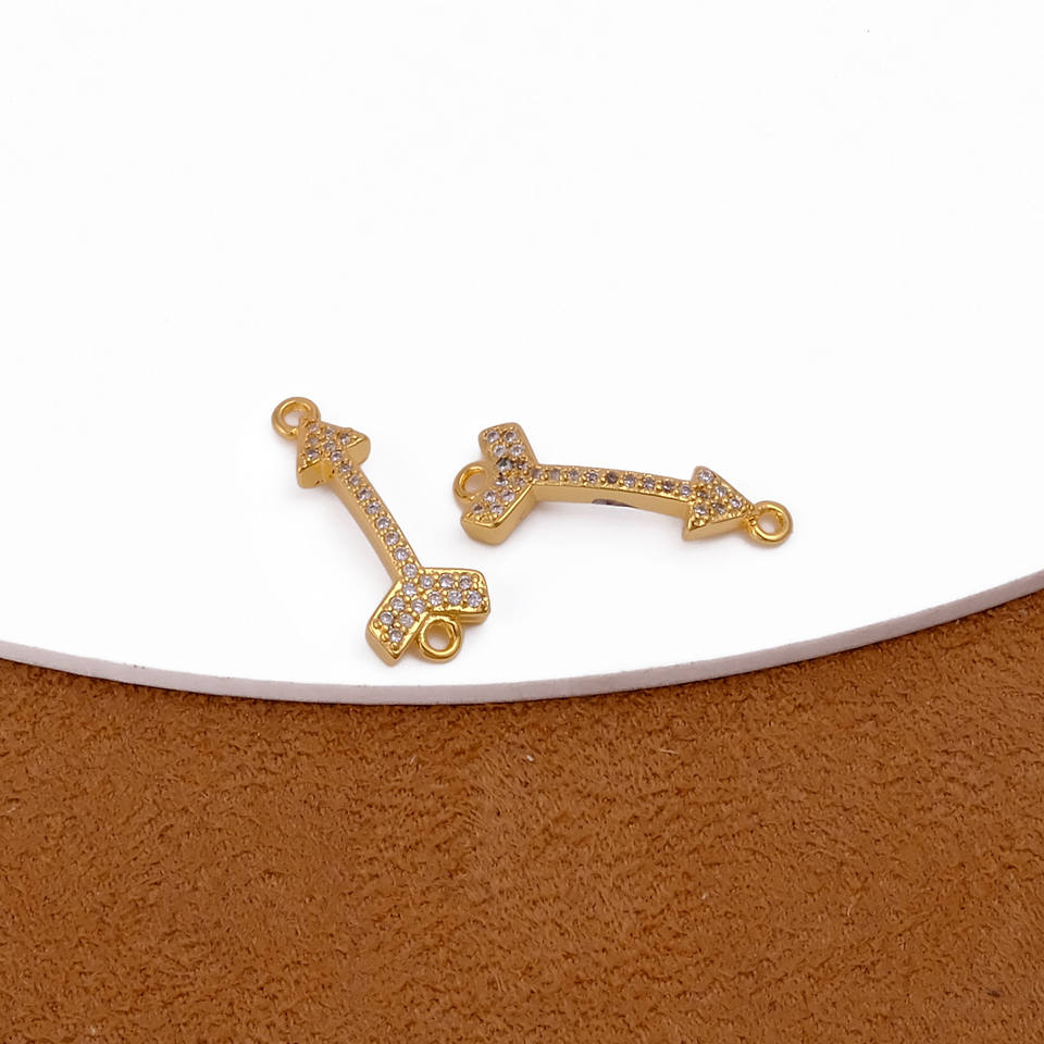 อินเทรนด์18K จี้ลูกศรชุบทองกับไมโครปูลูกบาศก์เซอร์โคเนียเสน่ห์ทิศทางที่งดงามสำหรับสร้อยคอ DIY สร้อยข้อมือเสน่ห์เสน่ห์