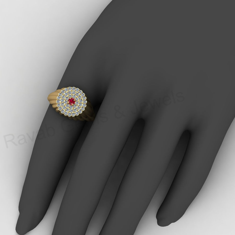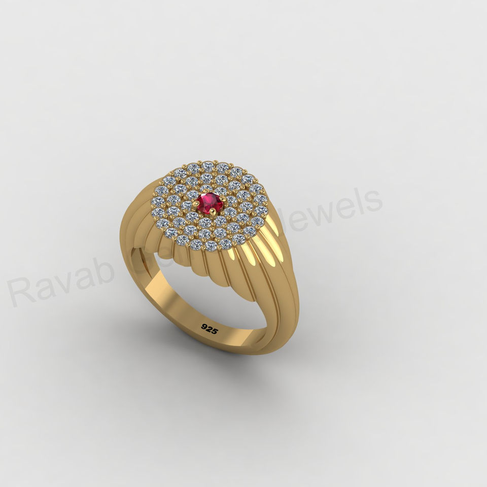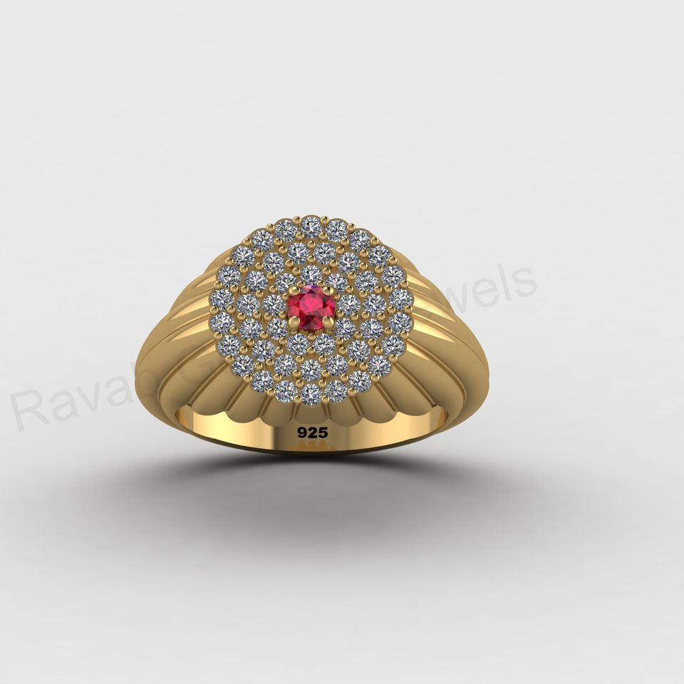 Sterling Silver Ruby Quartz & Full CZ Diamond Designer Pinky Ring
