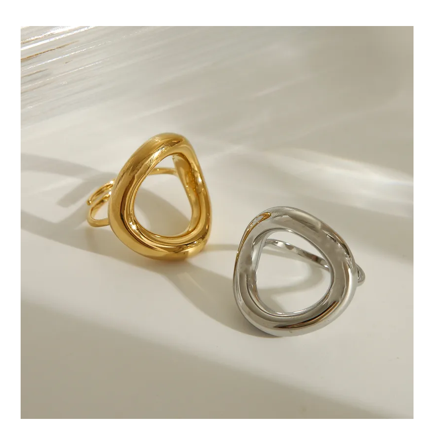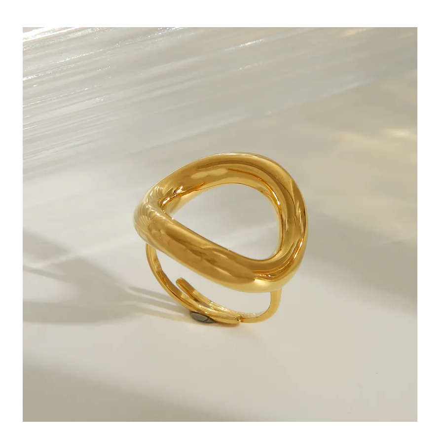 แหวนสแตนเลสทรงเรขาคณิตที่เรียบง่ายสีทอง18K อินเทรนด์กันน้ำเครื่องประดับแฟชั่นสำหรับผู้หญิง-เครื่องประดับรูปวงรี