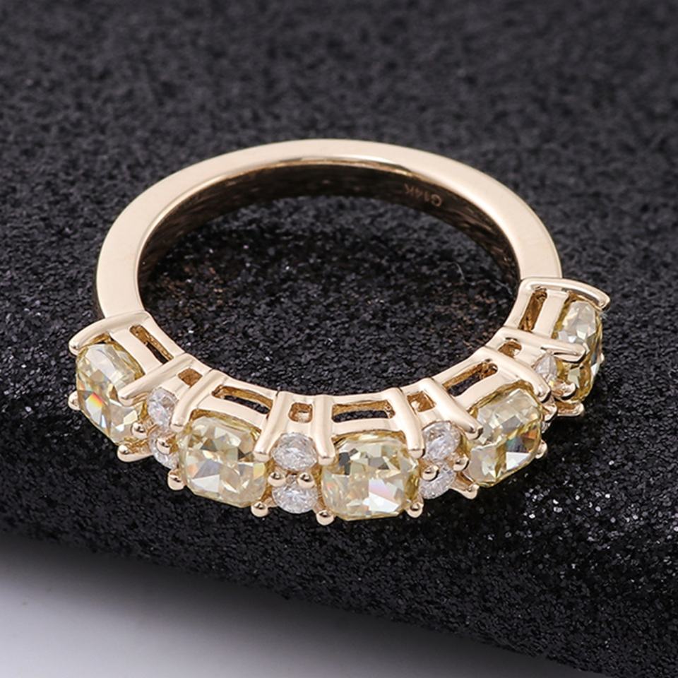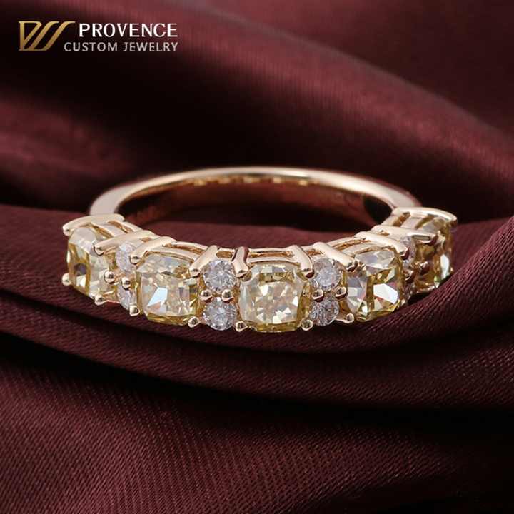 แหวนทองแท้ 2 สี ทันสมัย 18k14k แหวนเพชรเหลืองทรงคุชชั่น แหวนมอยส์ซาไนต์ VVS สำหรับผู้หญิง ผู้ชาย แหวนแต่งงาน