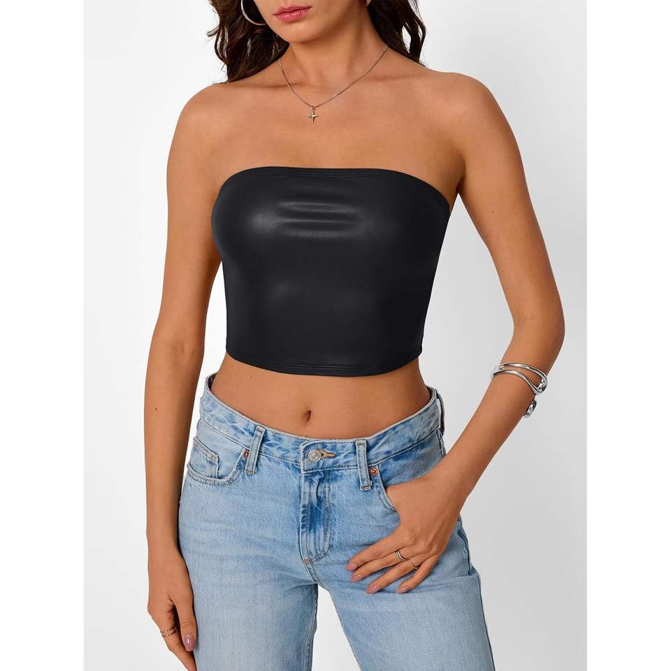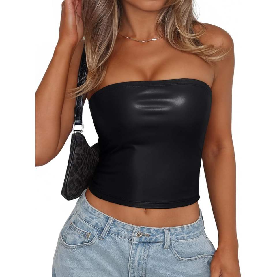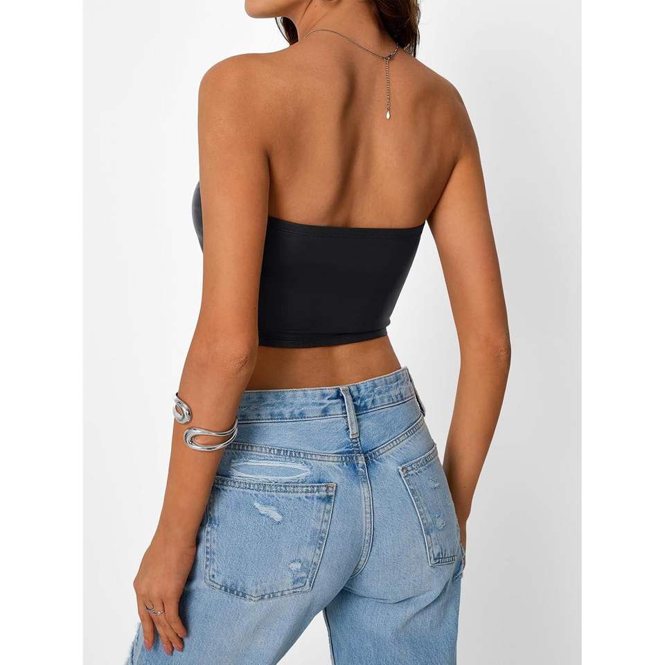 เสื้อครอปเกาะอกไร้สายแขนกุด2025ทันสมัยสำหรับผู้หญิงชุดฤดูร้อนน่ารักชุดหนังสำหรับออกไปคลับ