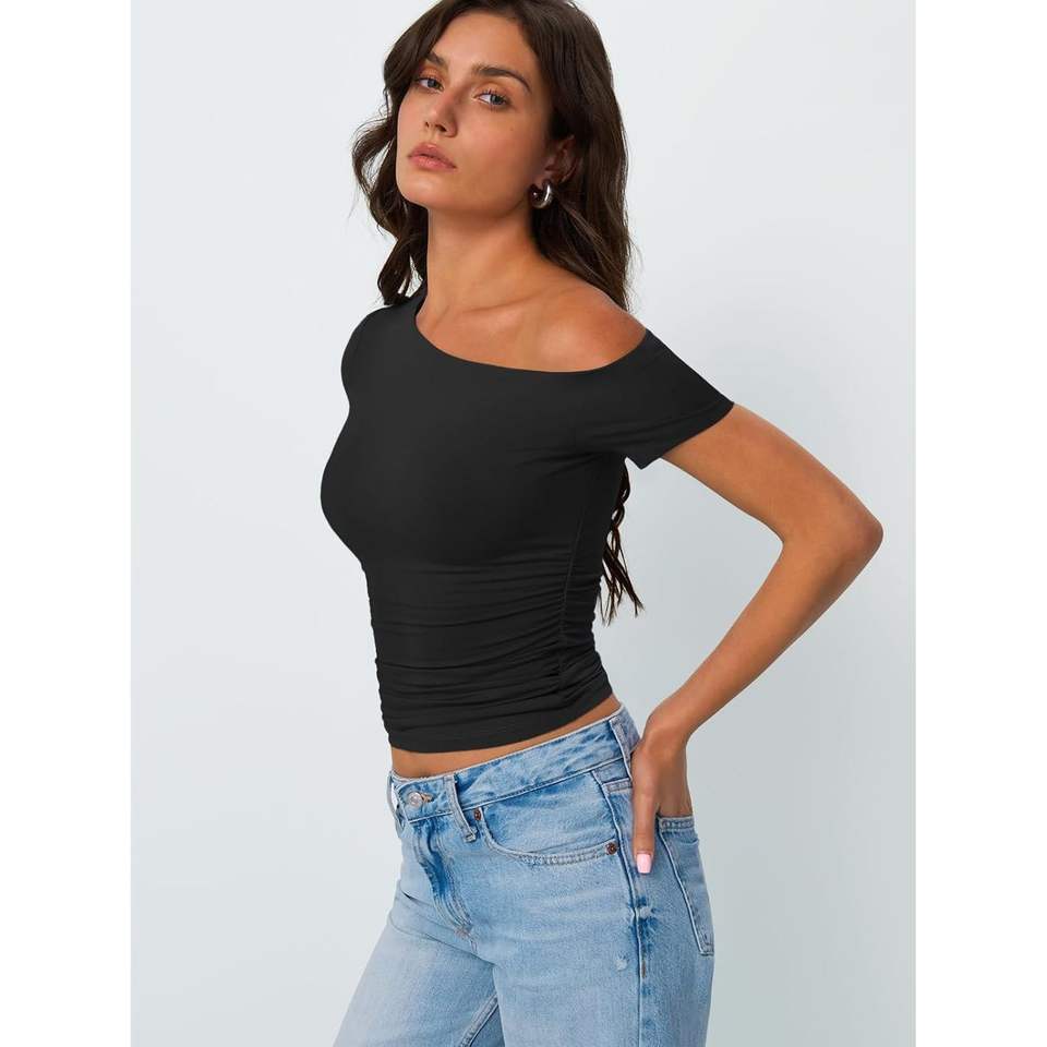 เสื้อครอปเปิดไหล่สุดฮิตประจำปี 2025 สำหรับผู้หญิง เสื้อยืดคิวท์เซ็กซี่สไตล์ควีน แขนสั้น บอดี้สูทสำหรับออกงาน