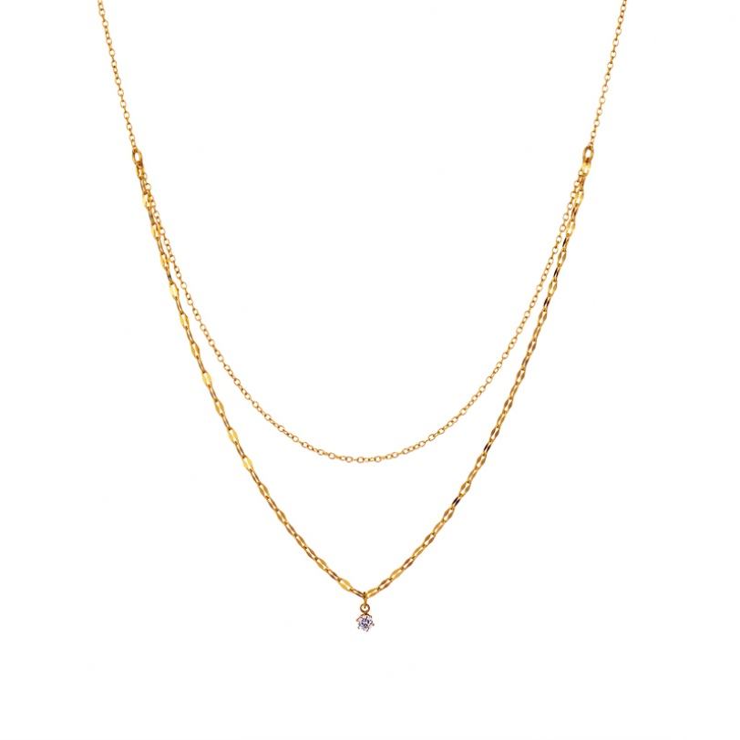 สร้อยคอแฟชั่นปี 2026 ดีไซน์เก๋ ปลอดภัยต่อผิวแพ้ง่าย ผลิตจากสแตนเลสสตีล 316L ชุบทอง 18K PVD แบบสองชั้นประดับเพชรซิร์คอน สำหรับผู้หญิง