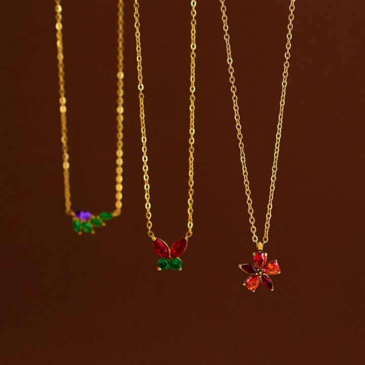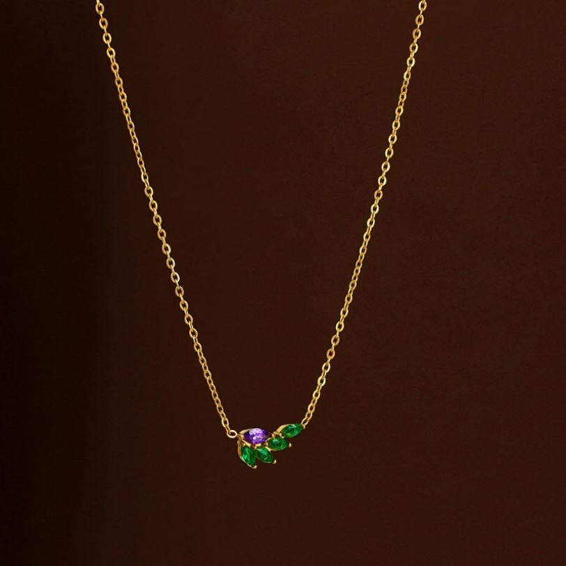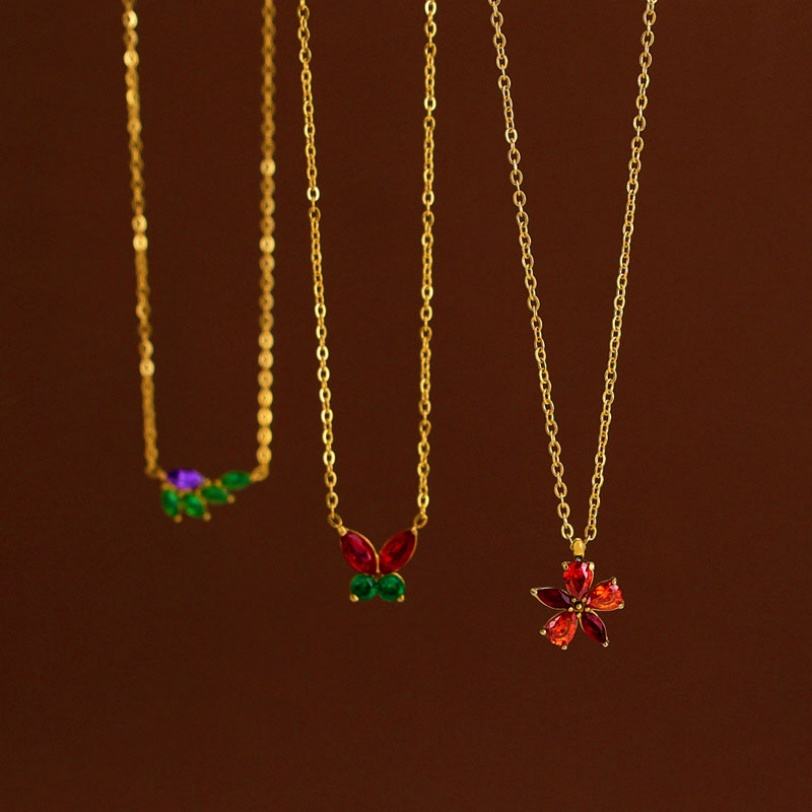 รูปร่าง รูปแบบ \:สร้อยคอเครื่องประดับสแตนเลส 316L ชุบทอง 18K PVD ประดับอัญมณี