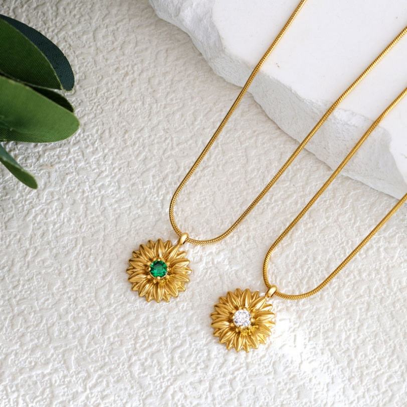 สร้อยคอแฟชั่นปี 2026 ดีไซน์สวยเก๋ ป้องกันการแพ้ ผลิตจากสแตนเลสสตีล 316L ชุบทอง 18K PVD ประดับดอกไม้และเพชรซิร์คอน สำหรับผู้หญิง