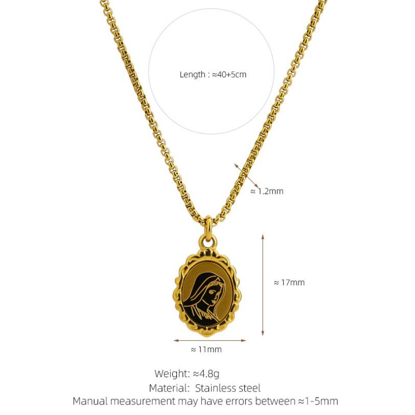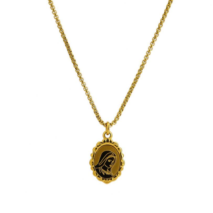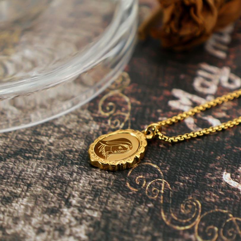 สร้อยคอแฟชั่นปี 2026 สไตล์ชาร์ม วัสดุสแตนเลส 316L ชุบทอง 18K PVD ลายพระแม่มารี สำหรับผู้หญิง