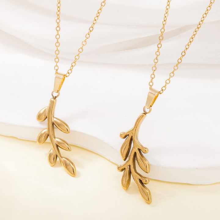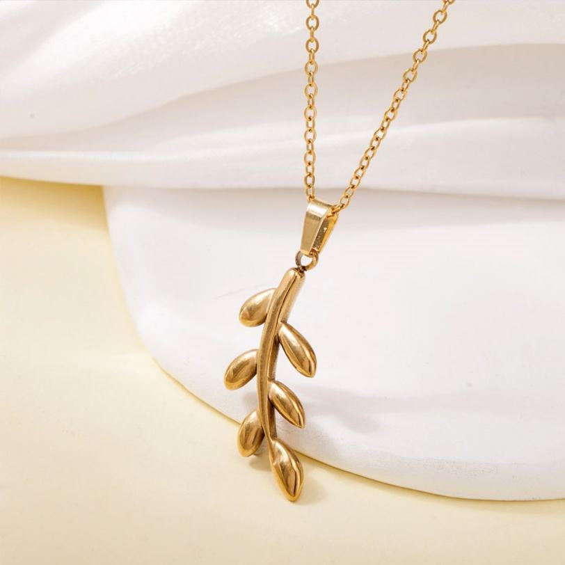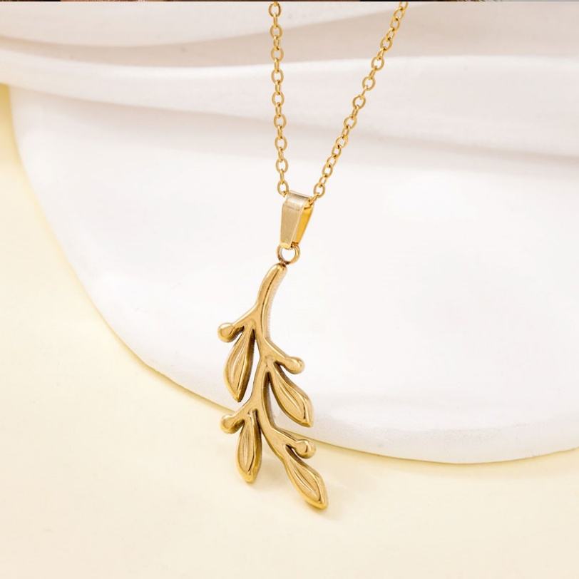 สร้อยคอแฟชั่นปี 2026 สไตล์มินิมอล ชุบทอง 18k PVD ลายกิ่งมะกอก สร้อยคอแสตนเลสชุบทองสำหรับผู้หญิง