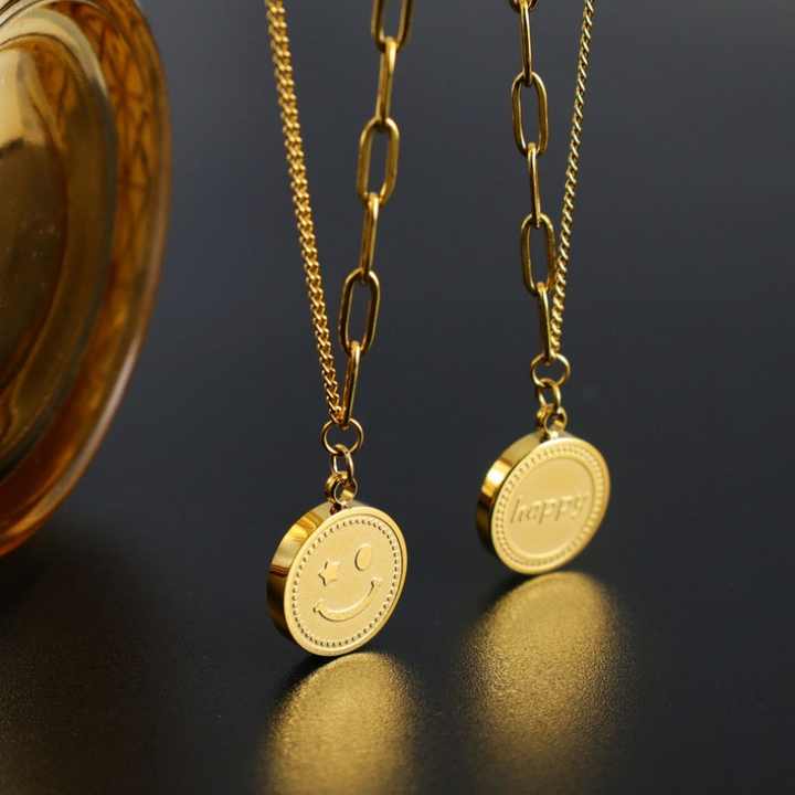 สร้อยคอแฟชั่นปี 2026 สไตล์มินิมอล ป้องกันการแพ้ ผลิตจากสแตนเลส 316L ชุบทอง 18K PVD ลายยิ้ม สำหรับผู้หญิง
