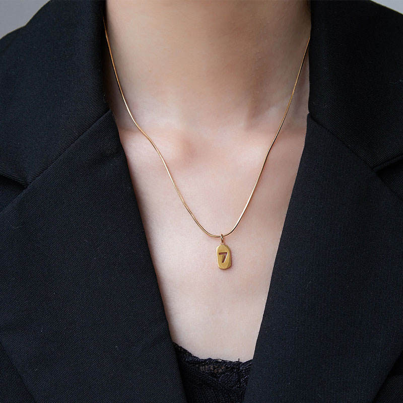 สร้อยคอแฟชั่นปี 2026 สไตล์มินิมอล ทำจากสแตนเลสสตีล 316L ชุบทอง 18K PVD รูปเลขเจ็ด สำหรับผู้หญิง