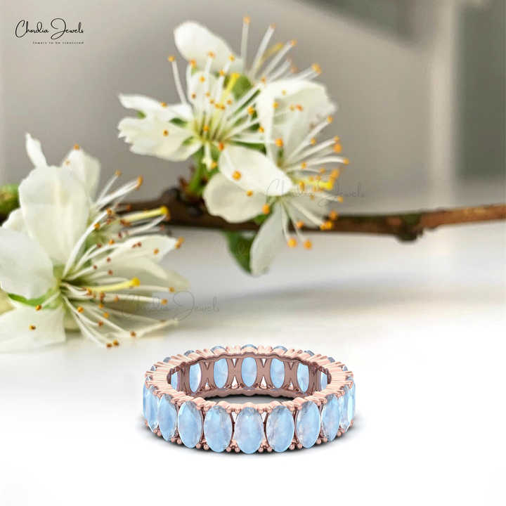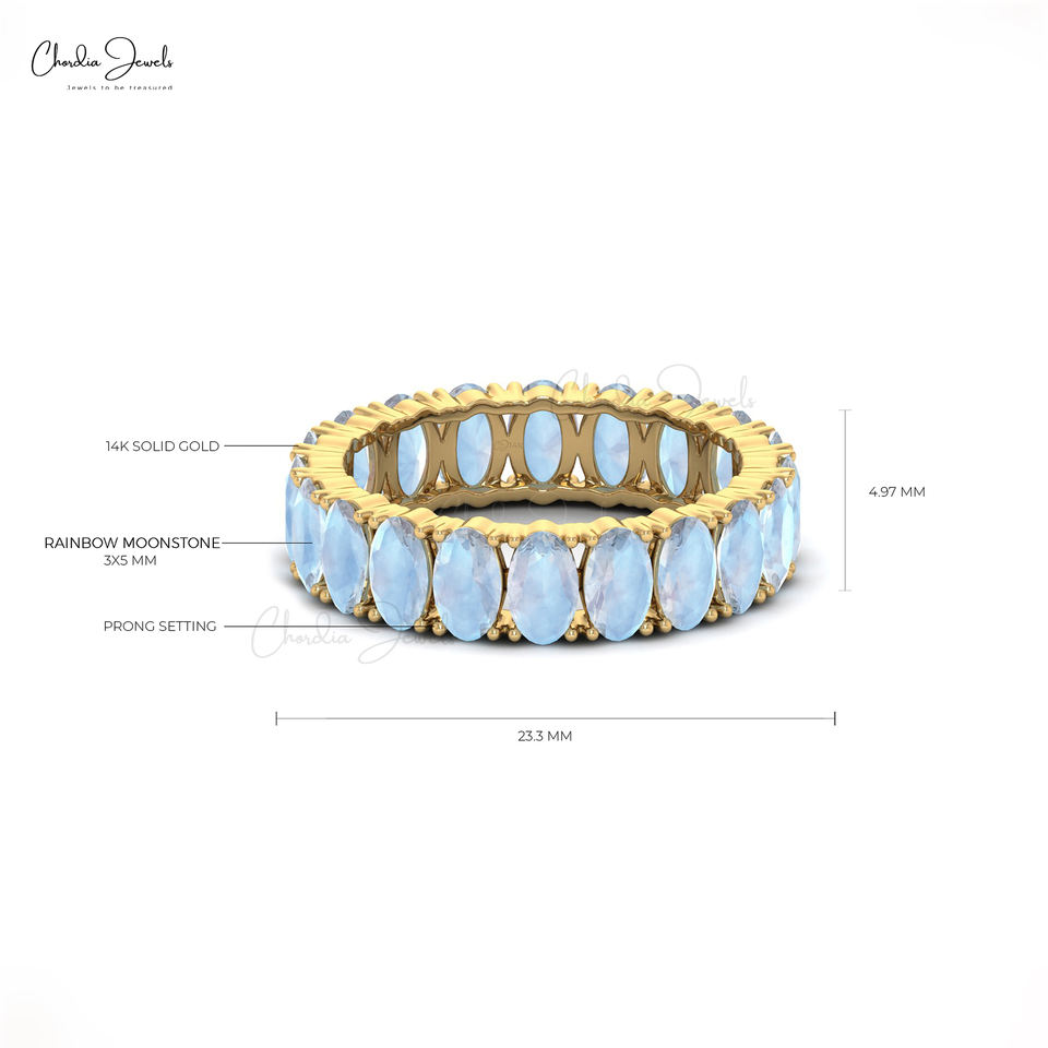 Trendy 5x3mm Oval Cut Gemstone Eternity Band 14k Solid Gold Rainbow Moonstone Stackable Engagement Ring Wholesale Distributors