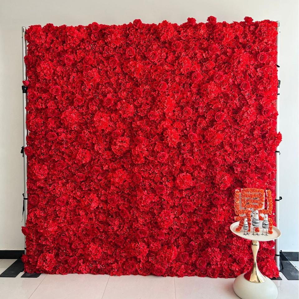 ฉากหลังถ่ายรูปงานแต่งงานแบบม้วนเก็บได้ ขนาด 8 ฟุต x 8 ฟุต ลายดอกไม้ 3 มิติ สุดฮิต