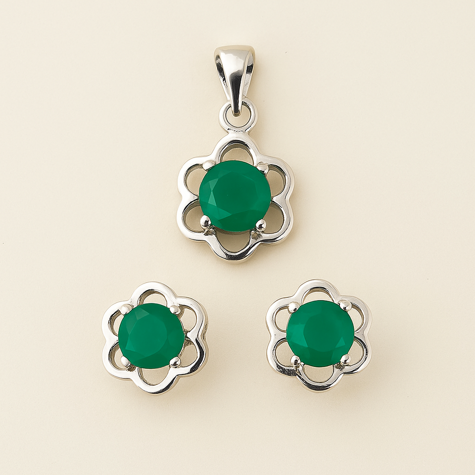 ชุดต่างหูเงินแท้ 925 ดีไซน์ทันสมัย 3 ชิ้น ประดับด้วยพลอยออนิกซ์สีเขียว ลายดอกไม้ เหมาะสำหรับงานหมั้น งานแต่งงาน งานเลี้ยงฉลองครบรอบ ของขวัญสำหรับผู้หญิง