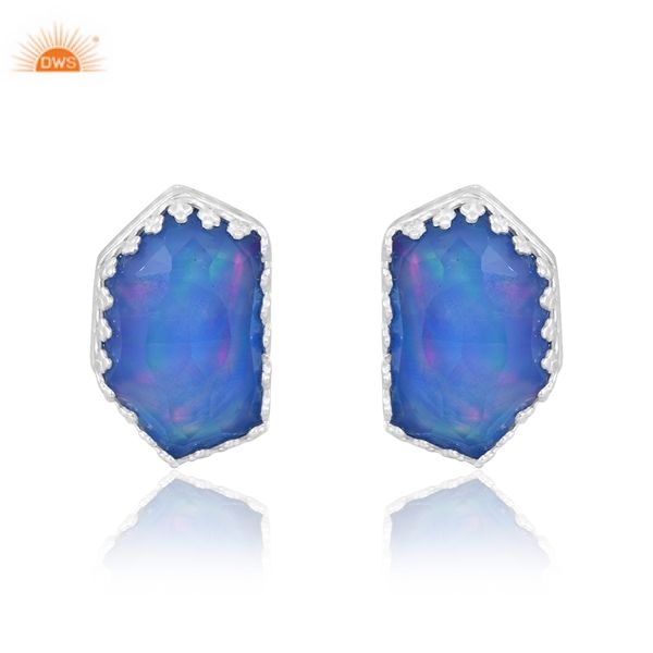 ต่างหูเงินแท้ 925 ประดับพลอยโอปอลสีน้ำเงินออโรร่า ทันสมัย จากผู้ผลิตเครื่องประดับ