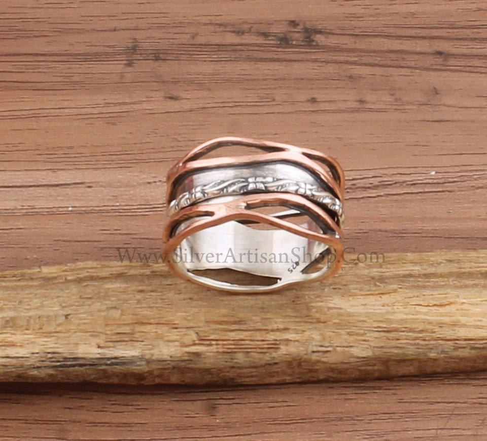 แหวนเงินแท้ 925 ดีไซน์ทันสมัย สองสี ผสมผสานโลหะแบบคลาสสิก สไตล์โบโฮ สำหรับผู้ชายและผู้หญิง ขายส่ง