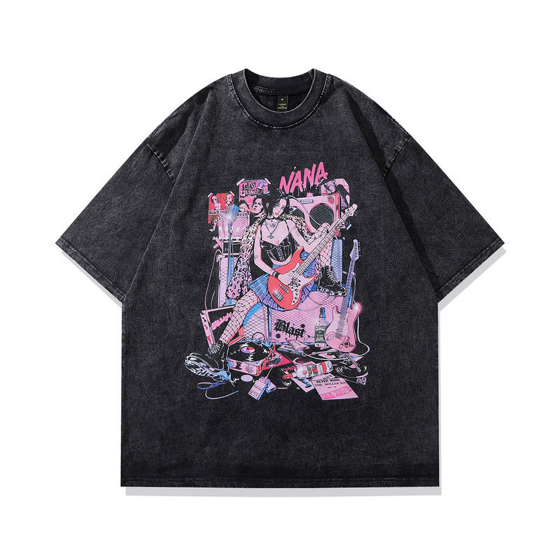 เสื้อยืดฮิปฮอปแบรนด์อเมริกันสุดเทรนด์สำหรับผู้ชาย ทรงโอเวอร์ไซส์ แขนสั้น ผ้าทอ ลุควินเทจ ซักแล้ว พร้อมโลโก้สั่งทำพิเศษ