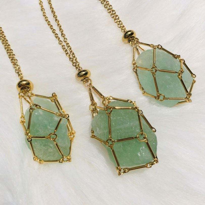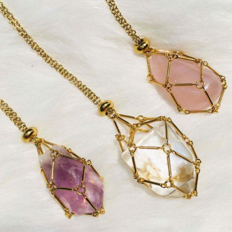 Trendy Anti Tarnish Custom Stainless Steel 14k 18k Gold Plated Natural Stone Crystal Necklace for Men Women