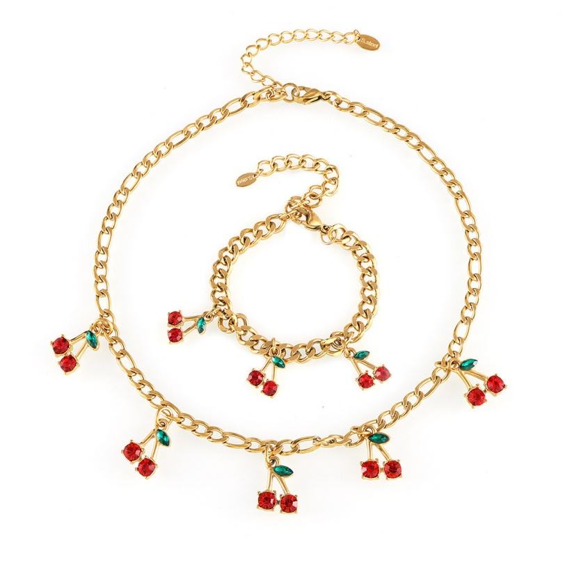 สร้อยคอทองคำแท้ 18K ดีไซน์ทันสมัย ป้องกันการหมอง พร้อมจี้เชอร์รี่สีแดง สำหรับผู้หญิงและเด็กผู้หญิง