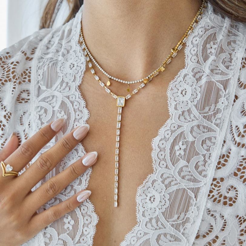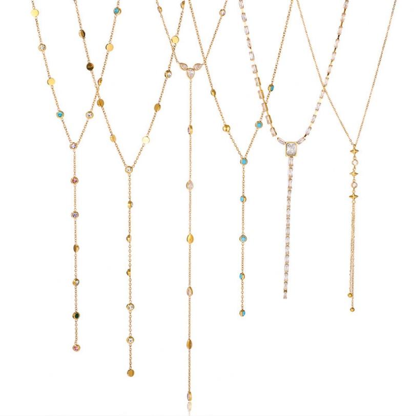 สร้อยคอทองคำแท้ 18K ดีไซน์ทันสมัย ป้องกันการหมอง ผลิตจากสแตนเลสอย่างดี ประดับเพชรซิร์คอน สำหรับผู้หญิง