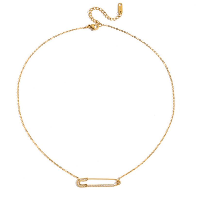 สร้อยคอทองคำแท้ 18K ดีไซน์ทันสมัย ป้องกันการหมอง สร้อยคอสแตนเลสอย่างดี รูปทรงคลิปหนีบกระดาษ สำหรับผู้หญิง