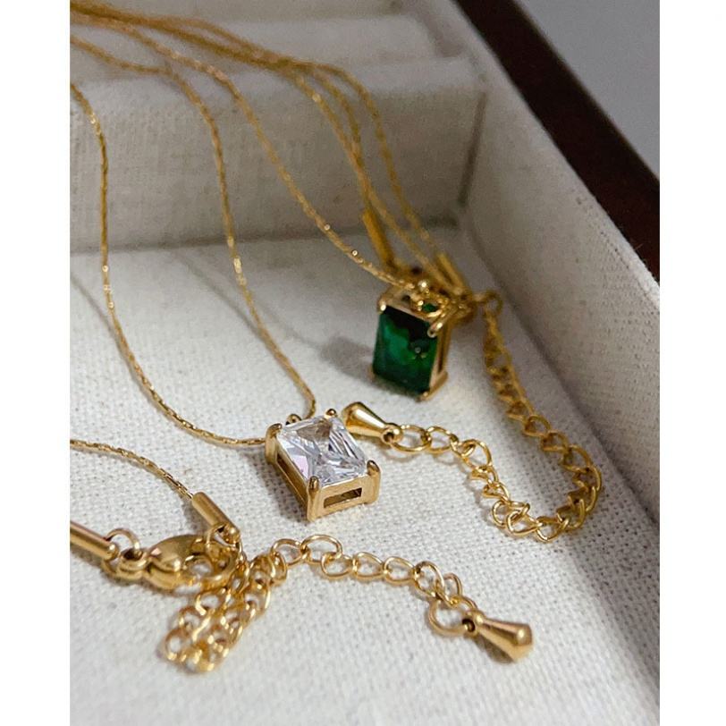 สร้อยคอทองคำแท้ 18K ดีไซน์ทันสมัย ป้องกันการหมอง สร้อยสแตนเลสคุณภาพสูง ประดับมรกตและเพทาย เหมาะสำหรับผู้หญิง