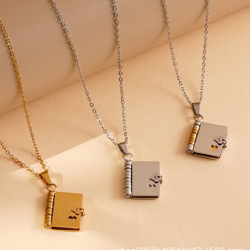 สร้อยคอจี้รูปหนังสือเคลือบทอง 18k ป้องกันการหมอง ทนทานต่อการแพ้ ผลิตจากสแตนเลสสตีล 316L สำหรับผู้หญิงและผู้ชาย
