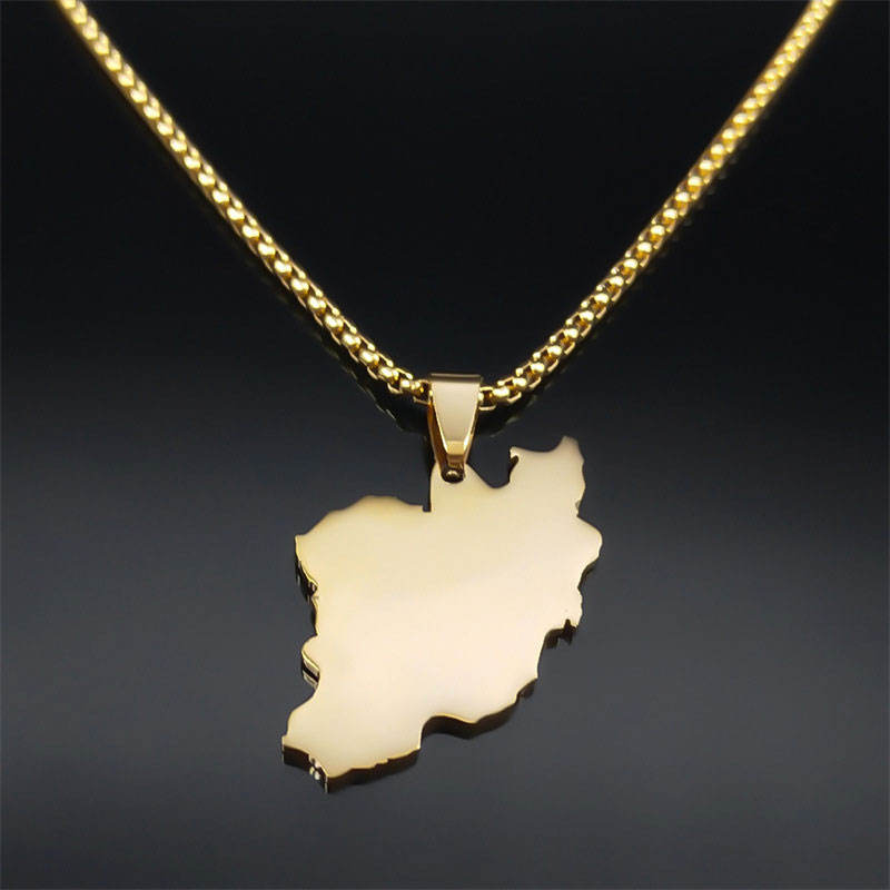 สร้อยคอแฟชั่นเคลือบ PVD สีเงินและสีทอง ป้องกันการหมอง สร้อยคอสแตนเลส 316L เครื่องประดับคุณภาพดี สร้อยคอรูปแผนที่อิหร่านสำหรับผู้หญิง