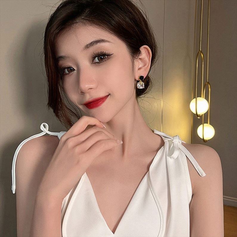 ต่างหูทรงสี่เหลี่ยมสีดำแบบอสมมาตรสุดฮิตปี 2025 ดีไซน์หรูหราและเบาบาง ชุบทองประดับมุก โลหะผสมสังกะสี สำหรับผู้หญิง