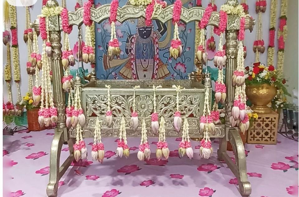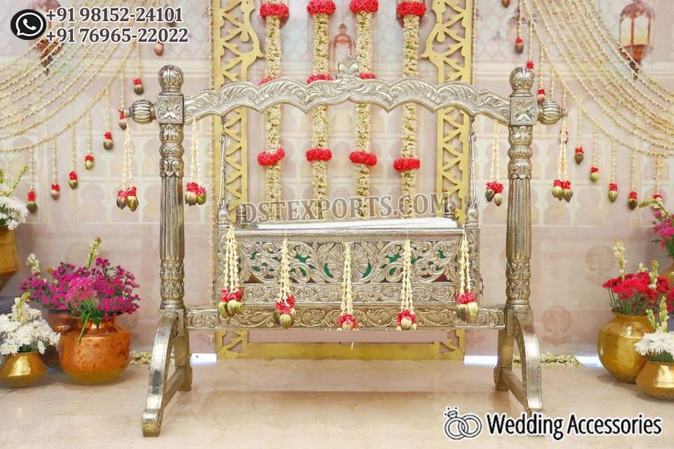 เปลไม้สำหรับพิธีตั้งชื่อเด็กทันสมัย ดีไซน์หรูหราแบบอินเดีย สำหรับพิธี Namkaran ในสหรัฐอเมริกา