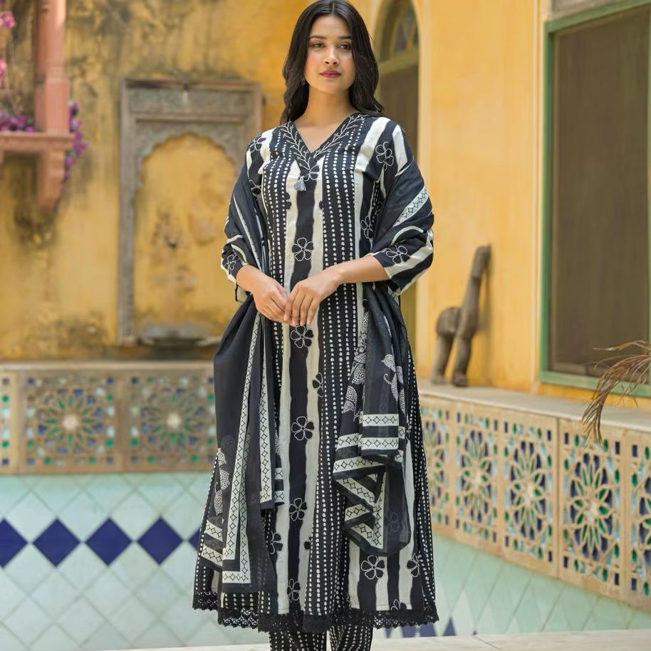 ชุดอานาร์กาลีผ้าฝ้ายแท้สวยงามทันสมัย พร้อมงานปักทั่วทั้งตัว เหมาะสำหรับช่วงงานแต่งงาน