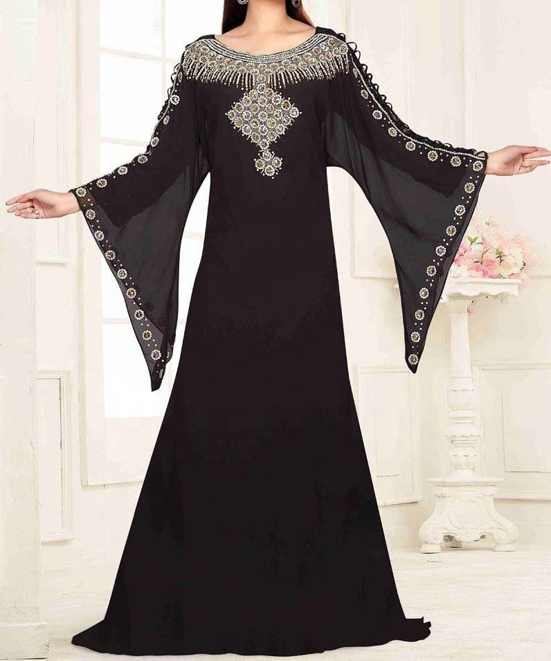 ชุดเดรสมุสลิมโมรอคโคลายดอกไม้สำหรับผู้หญิงชุดกระโปรงทำงานด้วยมือสีดำทันสมัยล่าสุดสำหรับงานแต่งงาน
