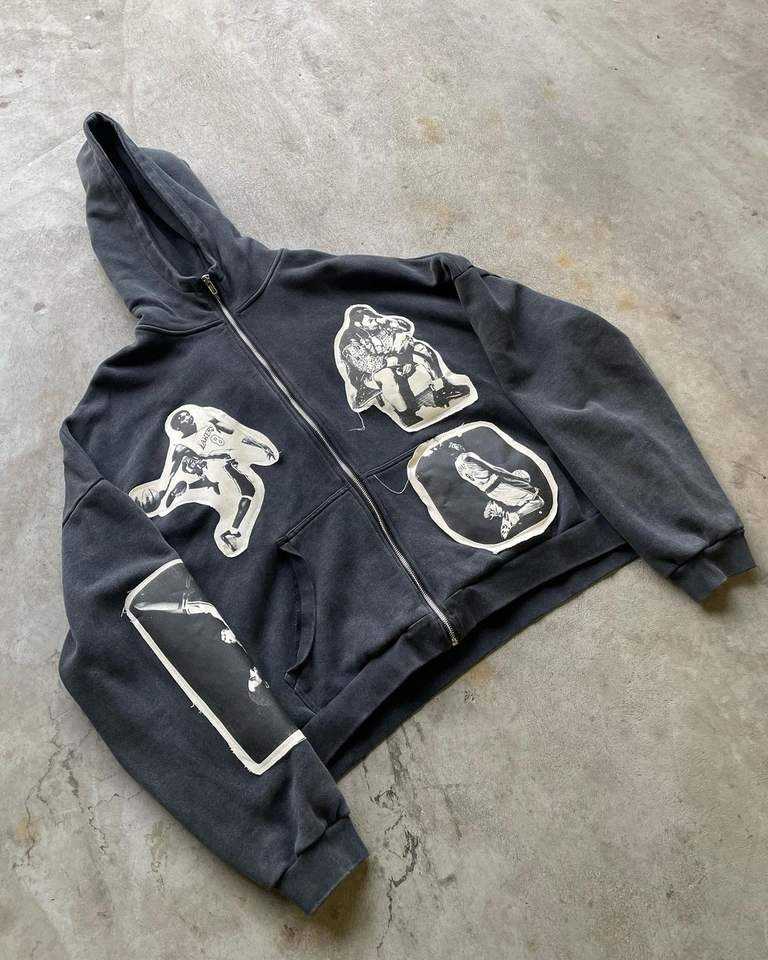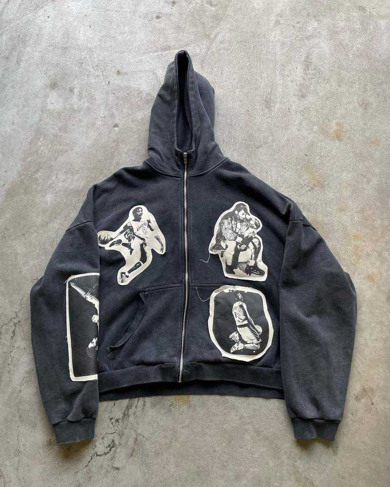 เสื้อฮู้ดมีซิปสีดำทันสมัยเสื้อสเวตเชิ้ตลำลองพิมพ์ลายบาสเก็ตบอลแนวสตรีทและแนวสตรีทพิมพ์ลายแนวสตรีทสำหรับผู้ชายและผู้หญิง