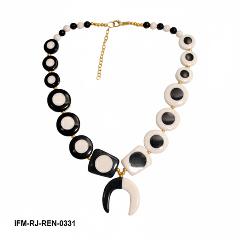 สร้อยคอเรซิ่นสีดำขาวสุดอินเทรนด์ ดีไซน์เรขาคณิตโดดเด่น งานแฮนด์เมด เครื่องประดับทันสมัย ของขวัญสำหรับเธอ