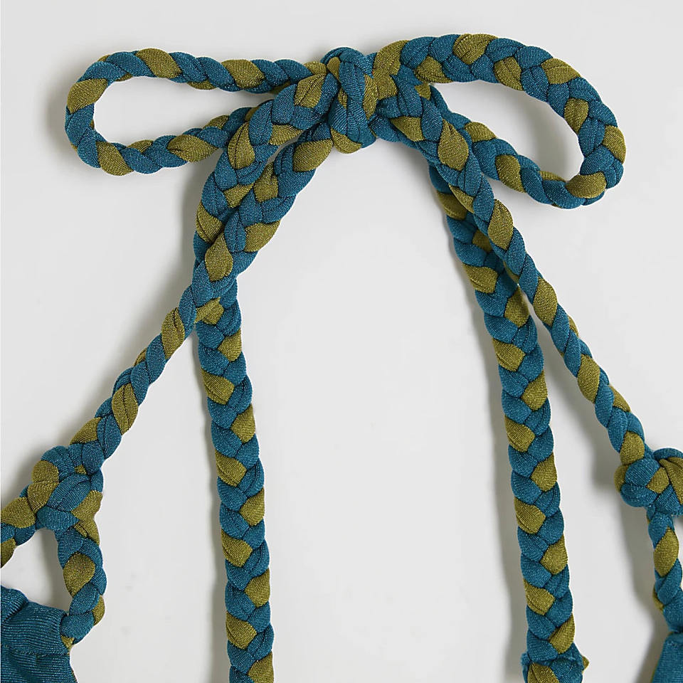 Trendy Blue Reversible Plaited Bikini Top Wholesale Triangle Bikini Set Breathable 2-piece solid pattern Swimwear OEM Wholesale