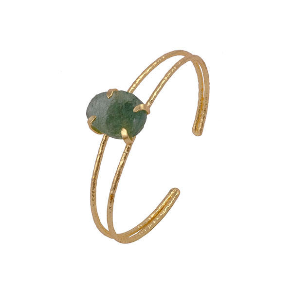 กำไลข้อมือดีไซน์แบบโบฮีเมียนยอดนิยมสร้อยข้อมือควอตซ์สีเขียวธรรมชาติพลอยพลอยอัญมณีชุดง่ามทองเหลืองคริสตัล