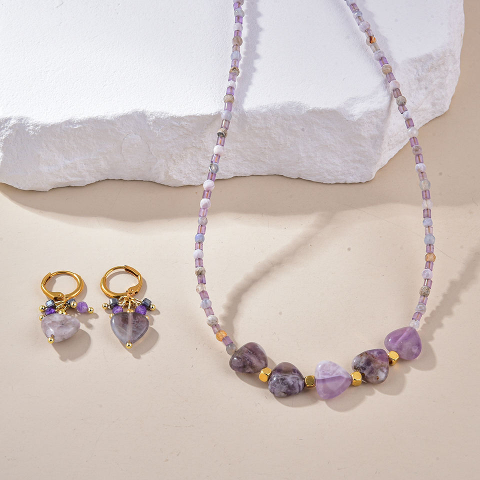 สร้อยคออเมทิสต์แฟชั่นประดับลูกปัดรูปหัวใจที่ได้แรงบันดาลใจจากโบฮีเมียนทุกวัน