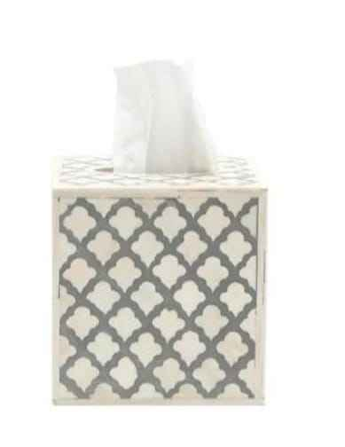 กล่องกระดาษทิชชูทรงสี่เหลี่ยมลายดอกไม้ ดีไซน์เก๋ไก๋ ตกแต่งด้วยงานฝังกระดูก พร้อมเคลือบเงาอย่างดี