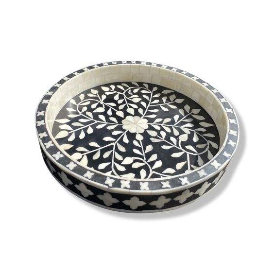 อินเทรนด์ฝังกระดูกและเรซิ่นถาดเสิร์ฟผลไม้หรูหราและของว่างถาดอาหารเช้าออกแบบฝังกระดูกจานเสิร์ฟในราคาโรงงาน