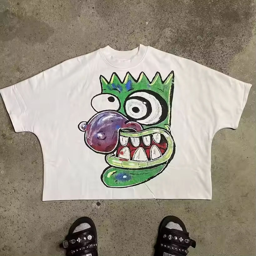 เสื้อยืดผ้าฝ้ายบ็อกซี่ครอปสำหรับผู้ชายทันสมัยเสื้อผ้าแนวสตรีทพิมพ์ลายกราฟิกโอเวอร์ไซส์ Y2K ผ้าหรูหราคุณภาพสูง