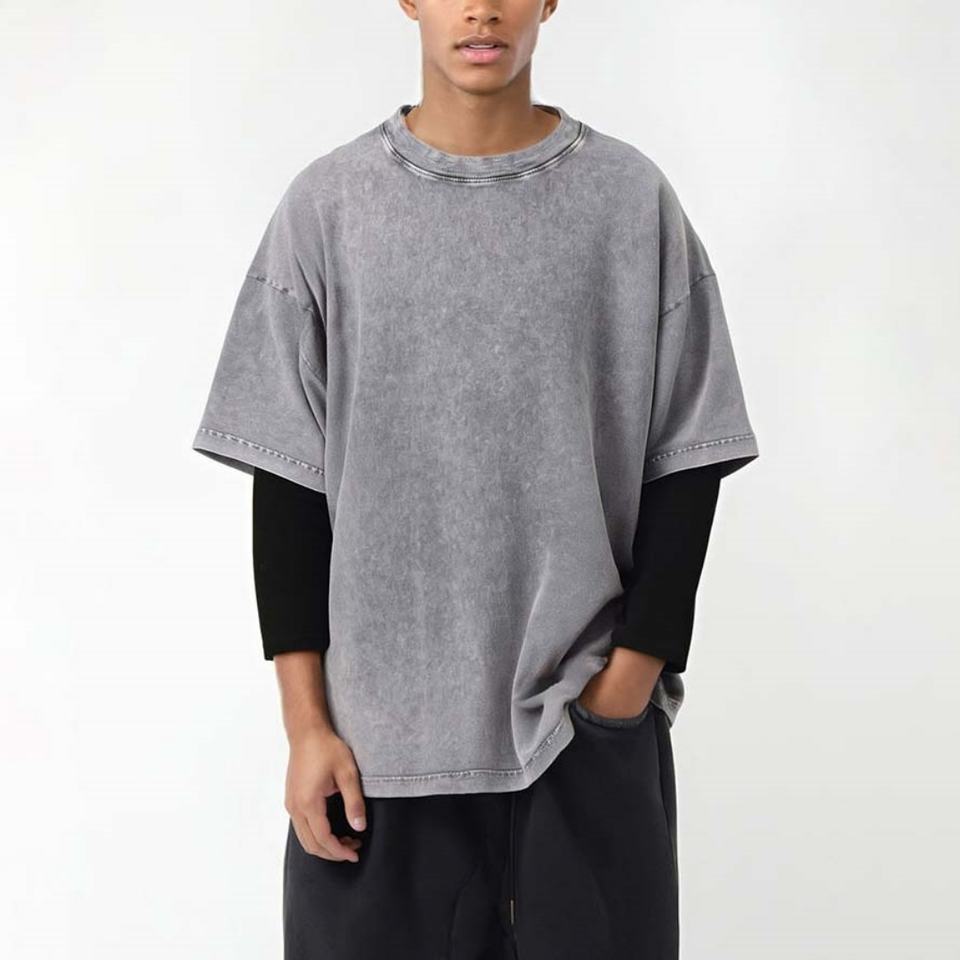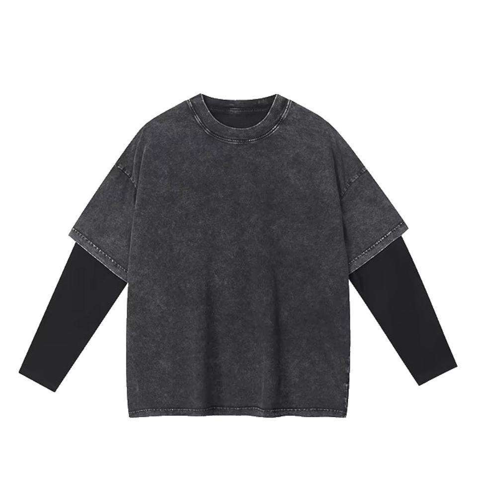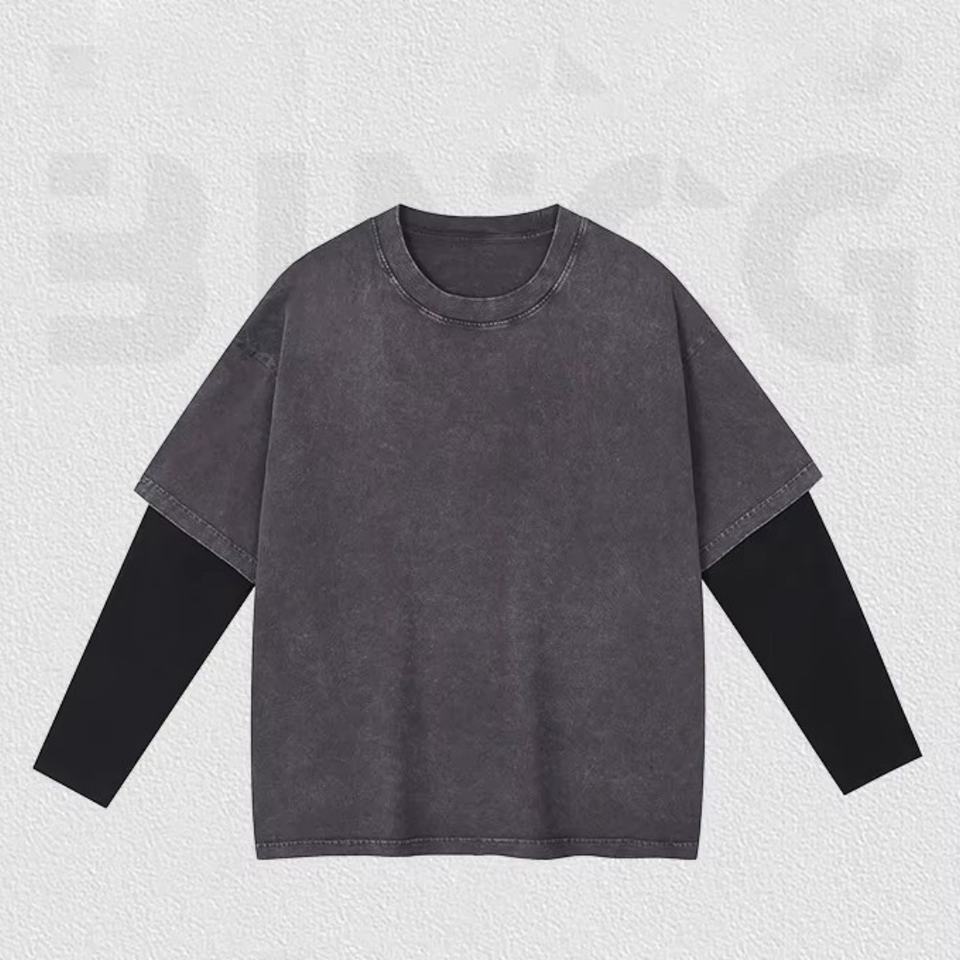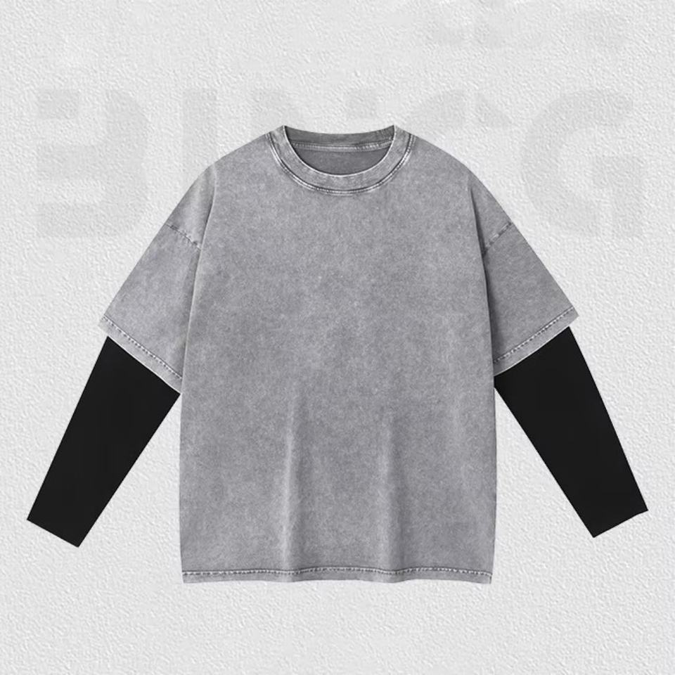 เสื้อเชิ้ตแขนยาวผู้ชายสไตล์เท่ห์ แบรนด์แฟชั่น ดีไซน์สองชิ้นหลอกๆ ผ้าคอตตอนแท้ 250 กรัม ตัดต่อสีสัน สไตล์สตรีทแวร์