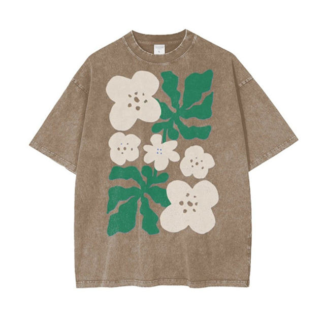 เสื้อยืดแขนสั้นสำหรับผู้ชายผู้หญิงซักด้วยกรดบนถนนสูงสำหรับฤดูใบไม้ผลิฤดูร้อน250 GSM พิมพ์ลายตัวอักษรทรงหลวม