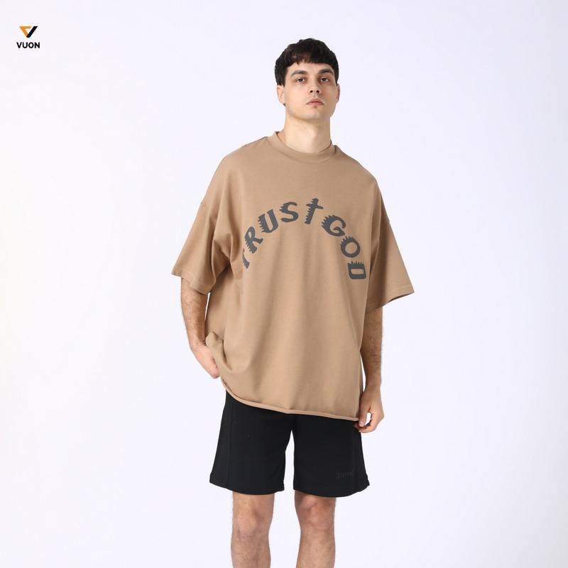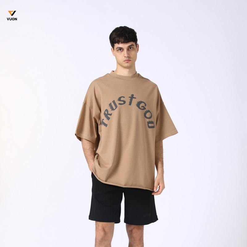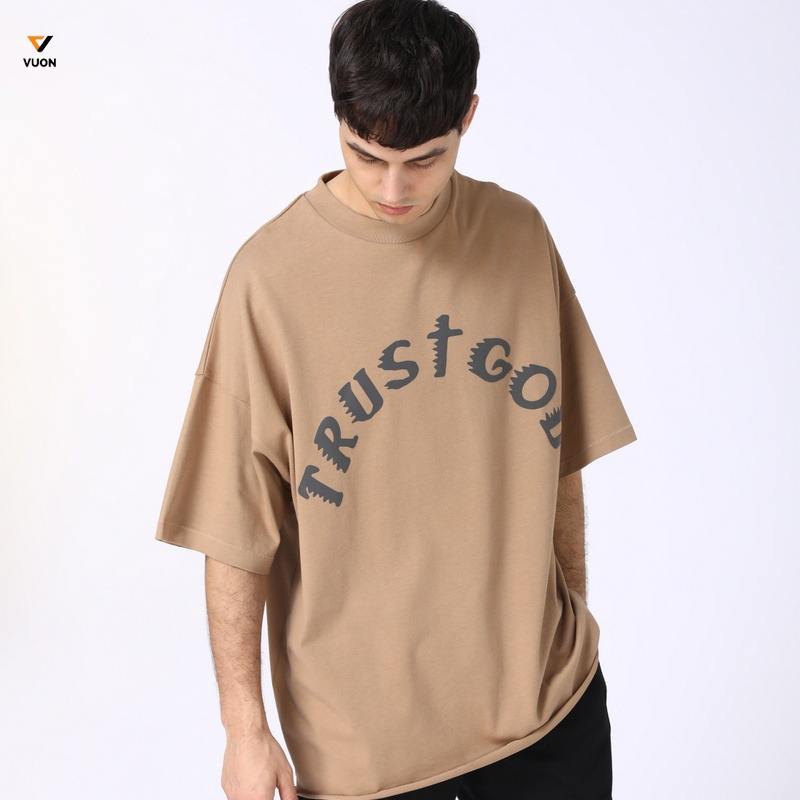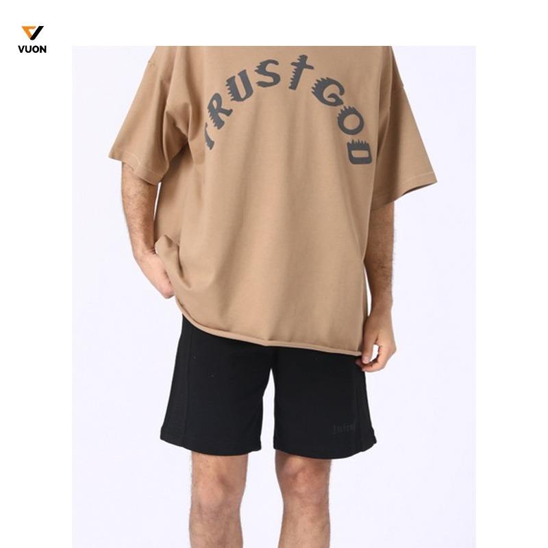 เสื้อยืดแขนสั้นลำลองผู้ชายแบรนด์เทรนดี้ เนื้อผ้าหนา 305 กรัม ผสมสแปนเด็กซ์/โพลีเอสเตอร์ ระบายอากาศได้ดี เป็นมิตรกับสิ่งแวดล้อม ผ้าเจอร์ซีย์ป้องกันการเป็นขุย
