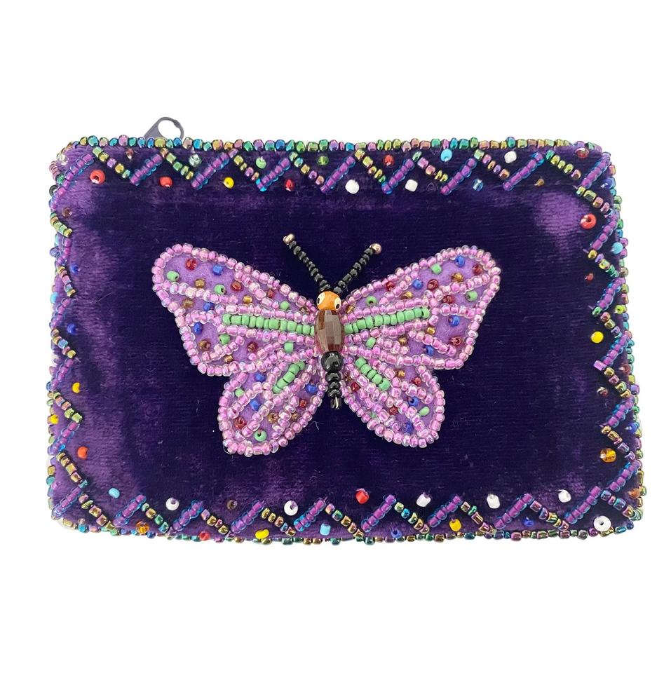 กระเป๋าใส่เหรียญลายผีเสื้อสุดอินเทรนด์ประดับด้วยลูกปัดสำหรับงานปาร์ตี้ของขวัญงานปักเมล็ดพันธุ์ลูกปัดกระเป๋าใส่เหรียญสไตล์กระเป๋า