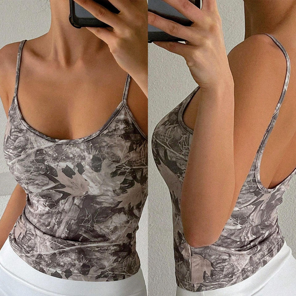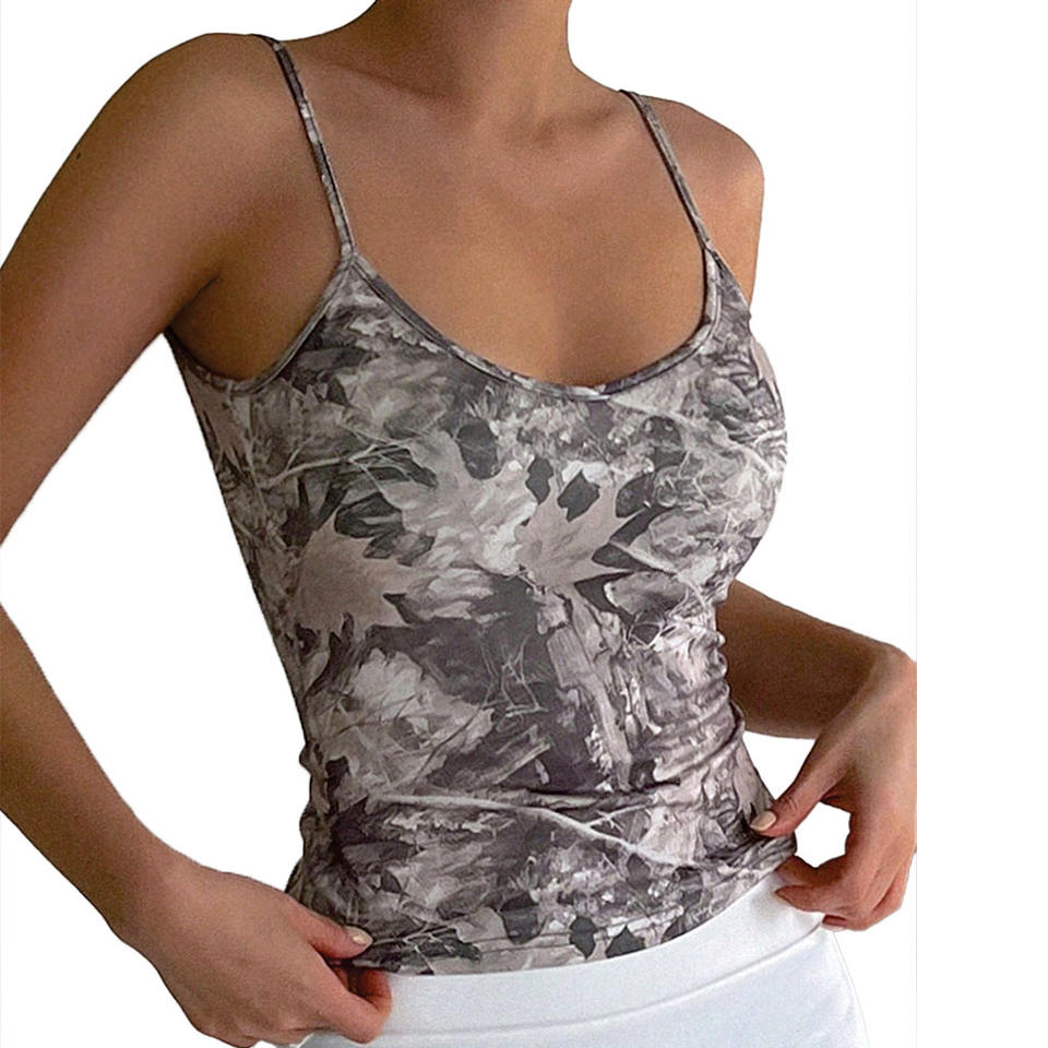 เสื้อกล้ามสายเดี่ยวทรงเข้ารูปลายพรางทันสมัย พิมพ์ลายแบบนามธรรม แฟชั่นสตรีทแวร์ฤดูร้อน รับทำแบรนด์เสื้อผ้าผู้หญิง