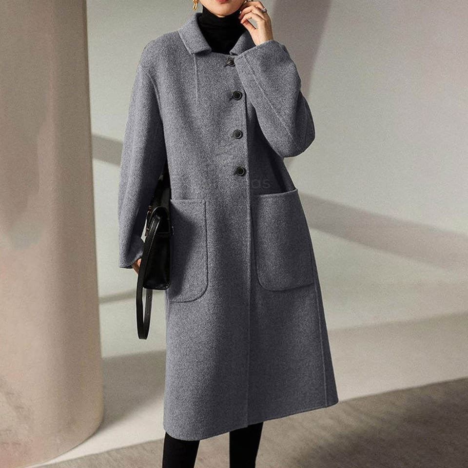 เสื้อโค้ทยาวสำหรับผู้หญิงอินเทรนด์ลำลองเสื้อโค้ทตัวยาวเข้ารูปเนื้อเรียบมีสไตล์