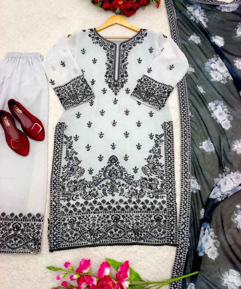 ชุดลําลองอินเทรนด์ชุดกางเกงเรยอน Dupatta พร้อมการพิมพ์เช็คสมัยใหม่และการต้อนรับงานมือสวมใส่ชุด Sharara ด้านบนสุทธิ