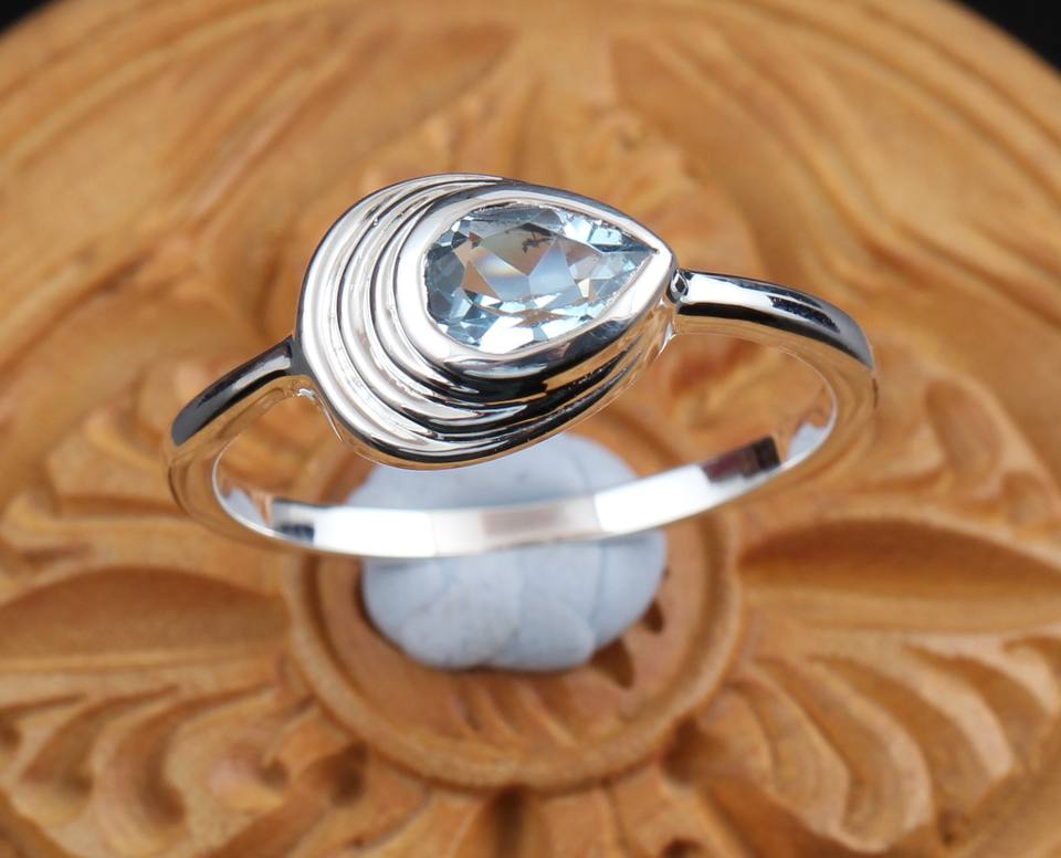 แหวนเงินแท้ 925 ชุบเงิน ประดับพลอยบลูโทแพซทรงโซลิแทร์ ดีไซน์เก๋ไก๋คลาสสิกสำหรับผู้หญิง เหมาะสำหรับใส่ทุกวัน