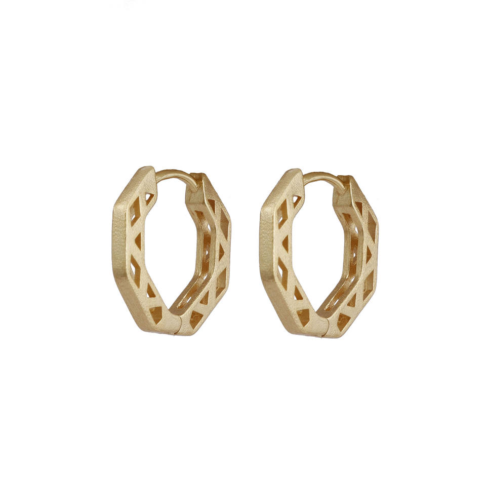 ห่วงทรงหกเหลี่ยมชุบทองคลีโอทันสมัยต่างหูรูปทรงเรขาคณิตที่ทันสมัยเครื่องประดับที่หนีบติดประตู